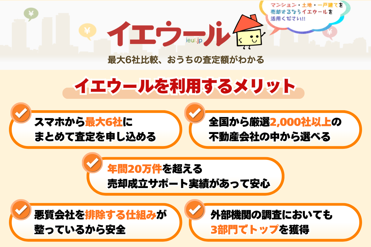 不動産売却を成功させるなら、全国2,000社以上の優良企業と提携し、安心のサポート体制が整う「イエウール」がおすすめです!
