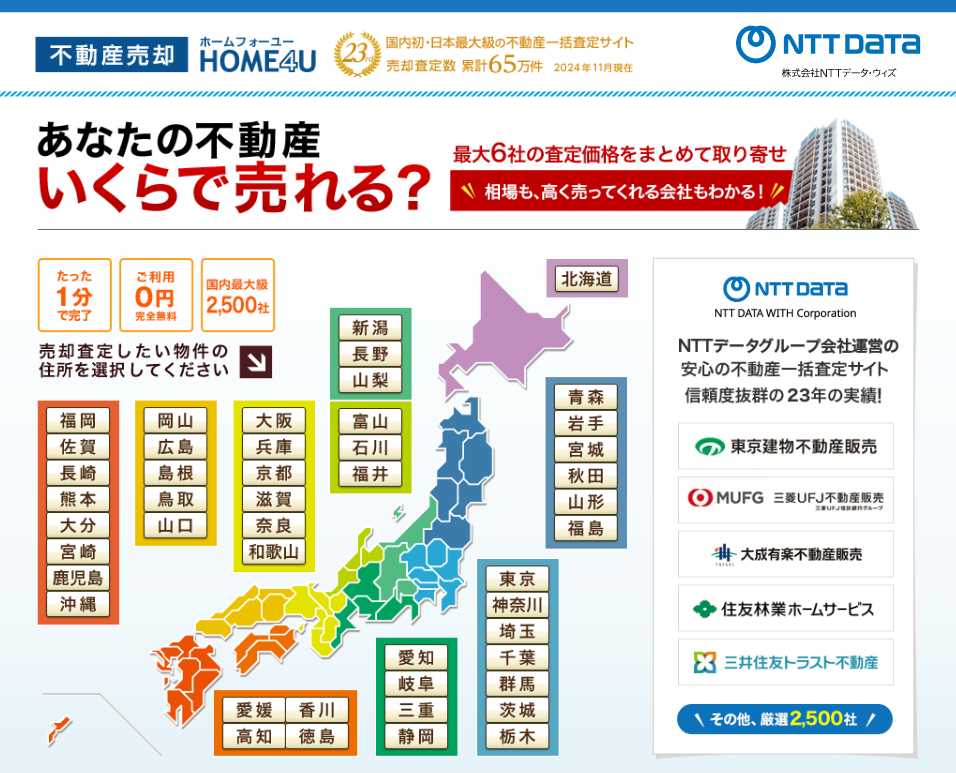 HOME4Uは、NTTデータグループが運営する日本初のネット不動産一括査定サービスです。