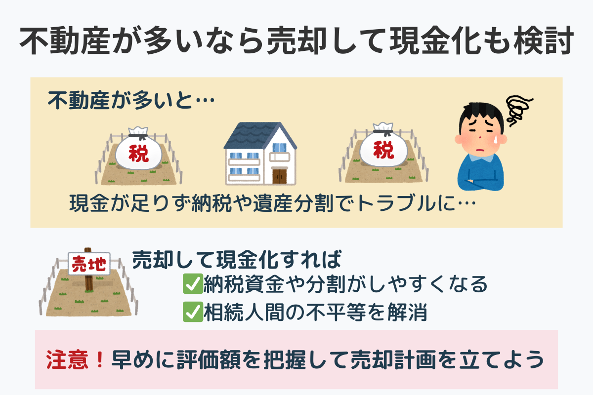 不動産は売却までに時間を要するため、相続開始後では手遅れになることも。