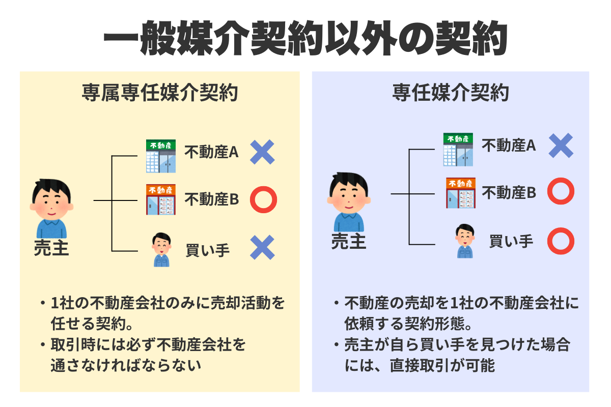 これらの契約は一般媒介契約より制限が厳しくて、1社にしか売却を依頼できません。