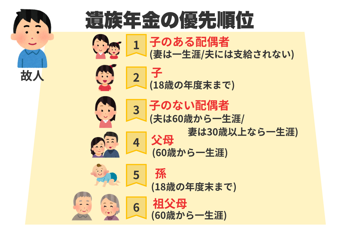 | 1 | 子のある配偶者 | 妻は一生涯/夫には支給されない |