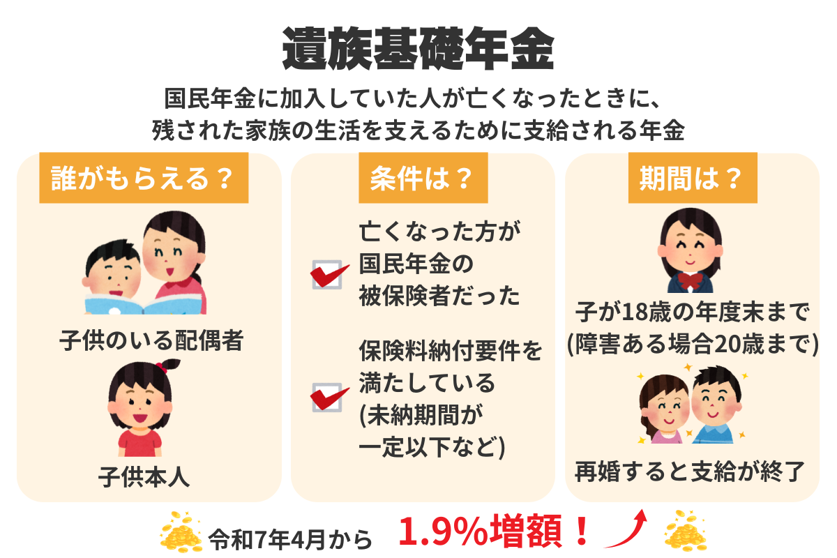 令和7年4月より年金額が1.9%引き上げられ、遺族年金も増加傾向に。