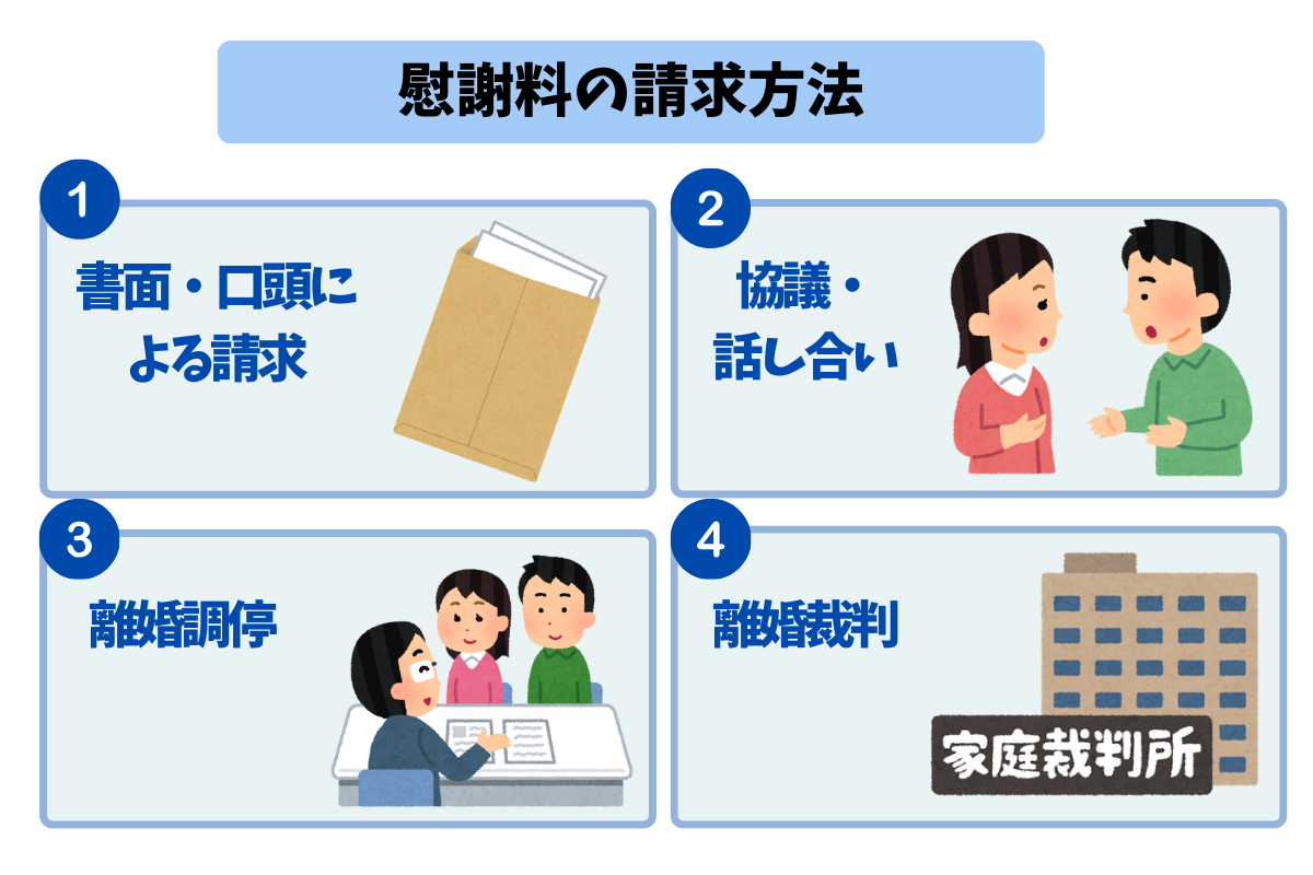 慰謝料を請求する方法には、いろいろな種類があります。