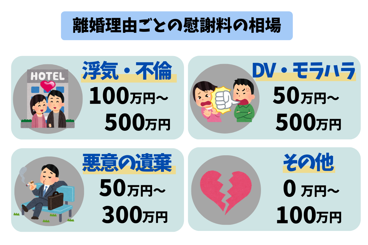 慰謝料の相場は、離婚の理由によって変わります。