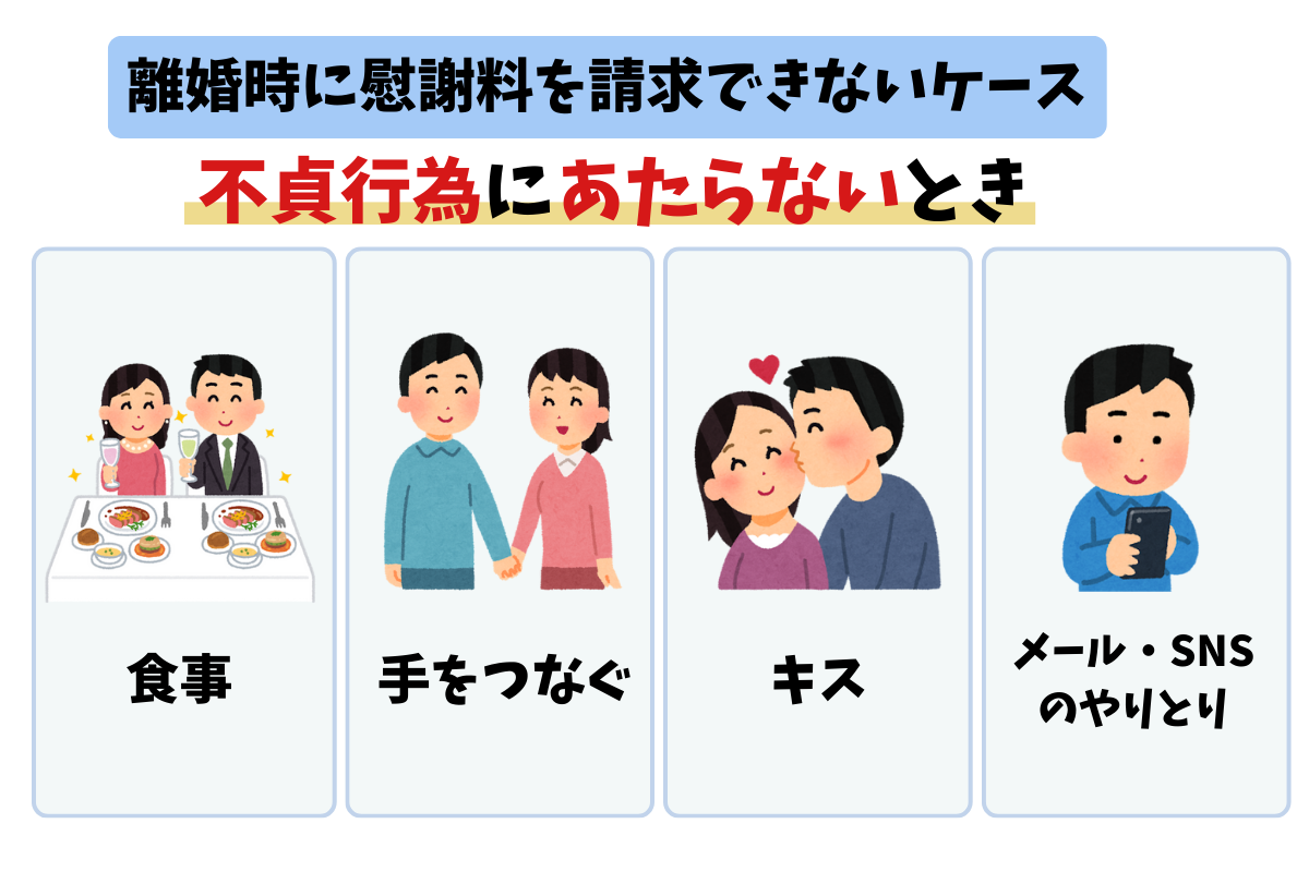 離婚時に慰謝料を請求できないのは、離婚理由が不貞行為にあたらないときです。