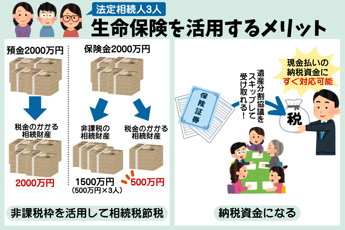 生命保険を税金対策として活用することで得られるメリットは大きく以下のふたつ。