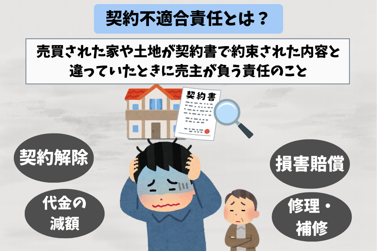 責任については、契約不適合責任という、売買した不動産に契約内容と異なる点がある時は売った側の責任が発生するため、売主が責任を負う義務があります。