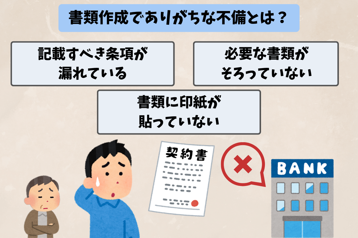 仲介業者を通す場合よりもトラブルが多く、金融機関が難色を示すこともあるため、書類を作成する時は不備がないか今一度確かめるようにしましょう。