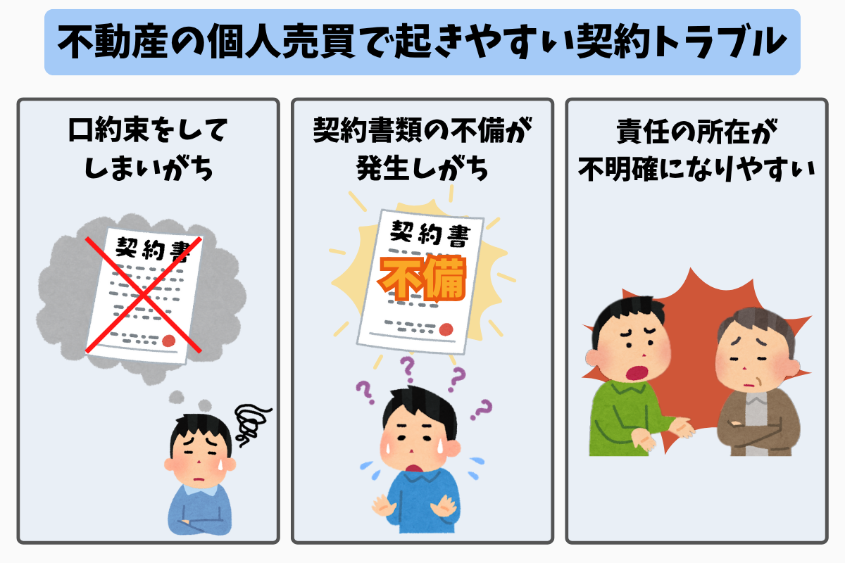 不動産の個人売買では契約上のトラブルが発生しやすい傾向にあります。