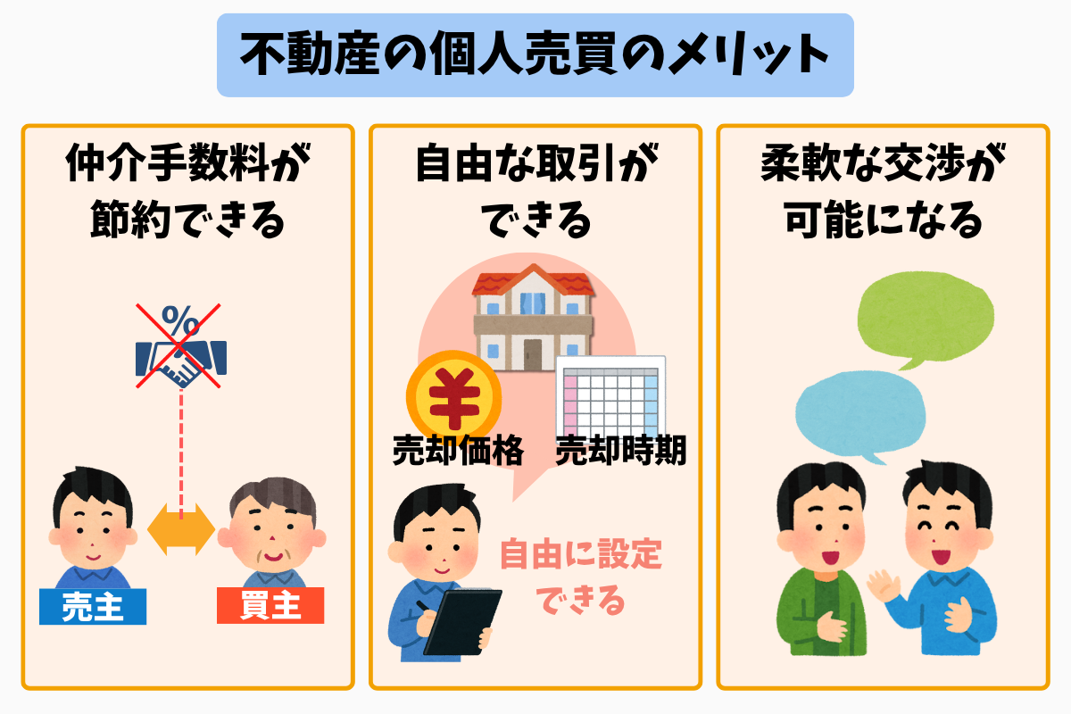 不動産の個人売買は、仲介業者を介さず売る側と買う側が直接、不動産に関する取引を行うことを言います。