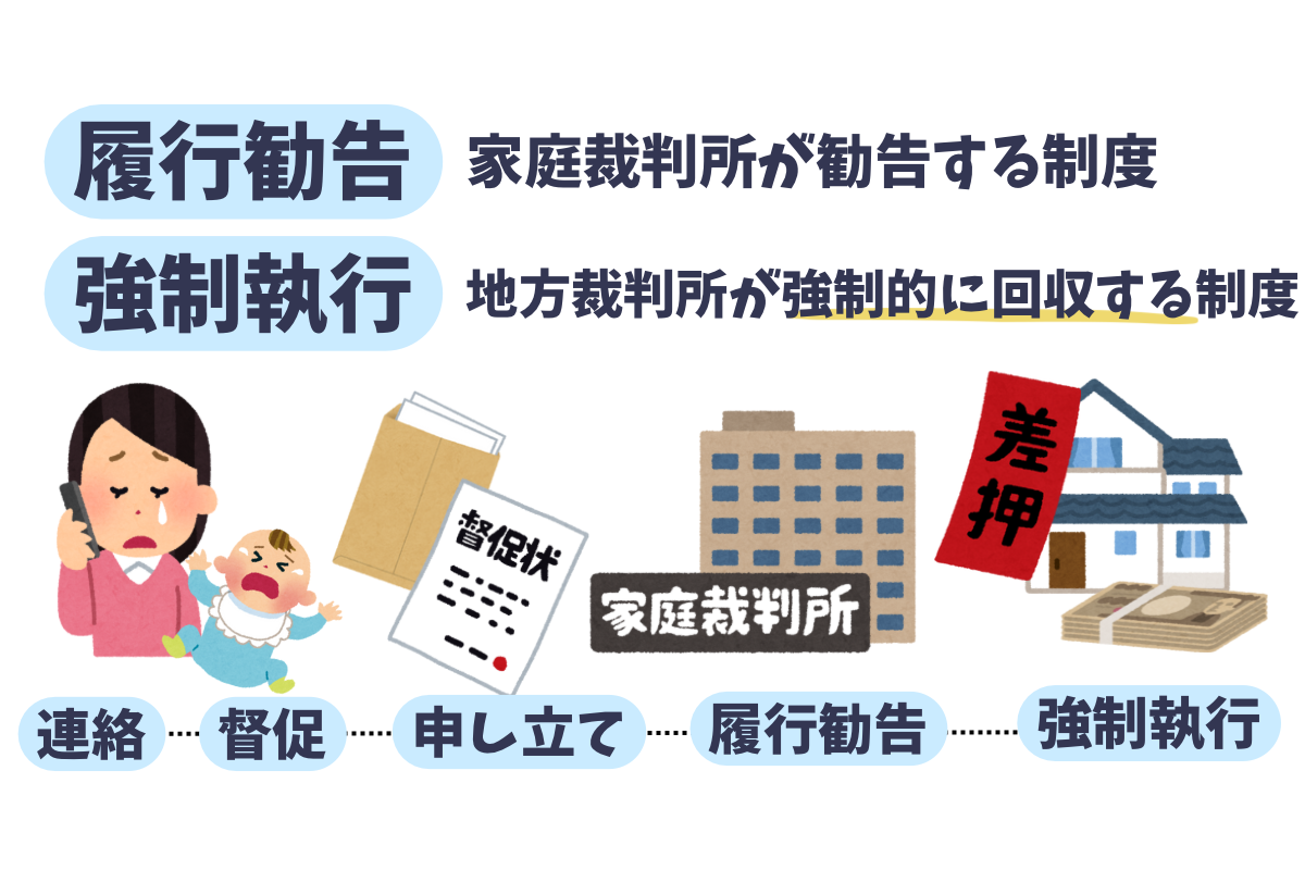 請求したのに支払いがなければ、家庭裁判所に申し出て支払うよう促してもらう「履行勧告」を行いましょう。