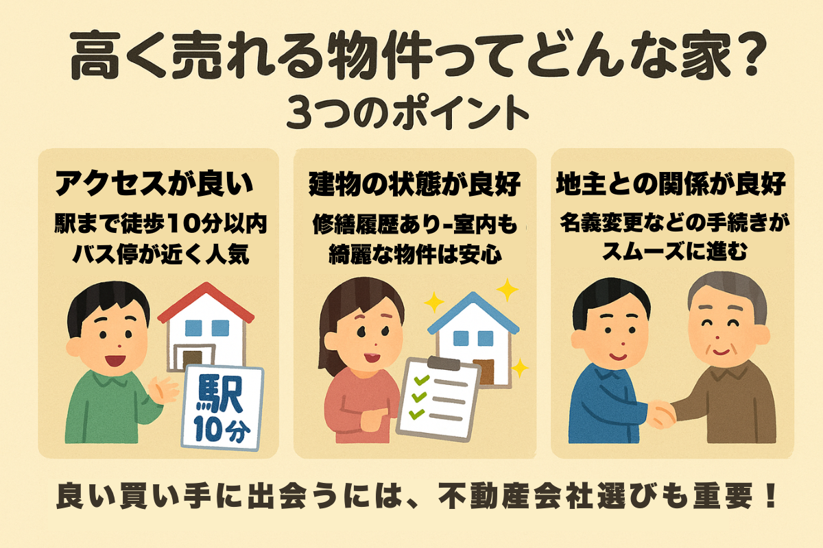 たとえば地主との交渉や名義変更の条件が見えづらいと、買主が不安を感じて購入をためらうことがあります。