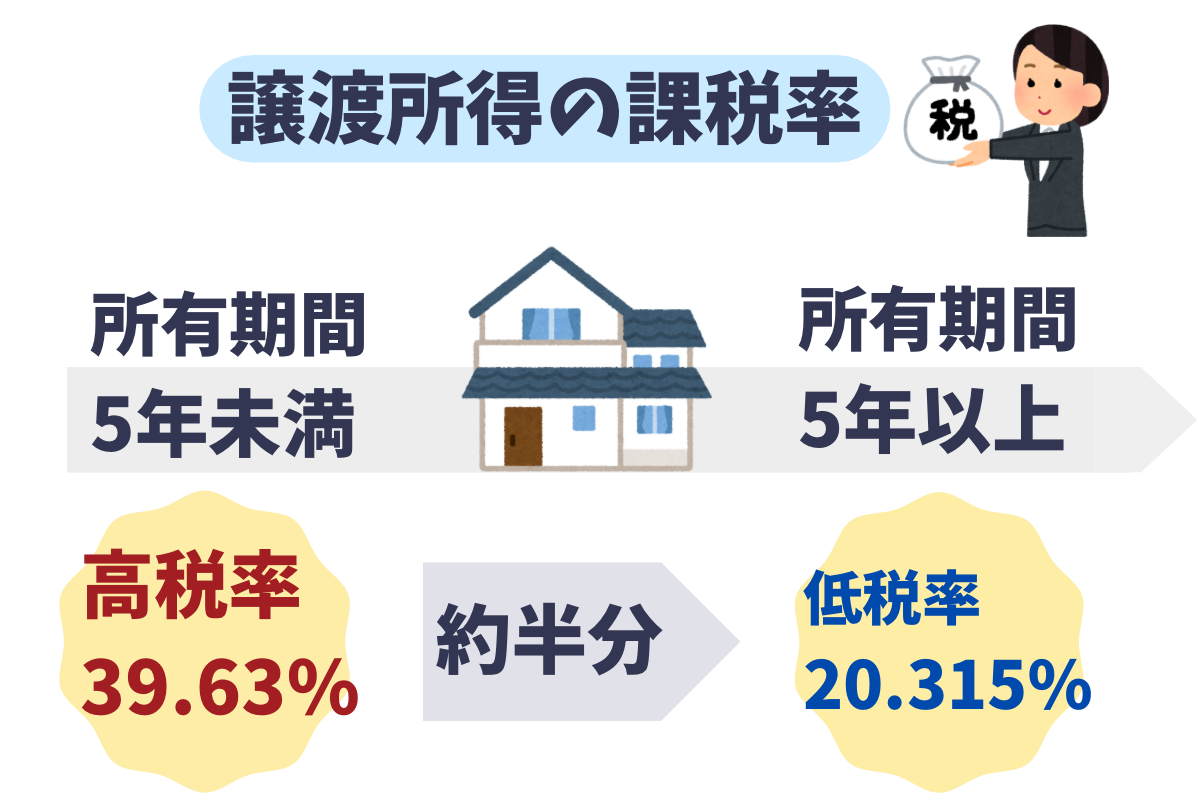 所有期間が5年を超える家は5年以下の家と比べて、譲渡所得の課税率が半分ほどになることも。
